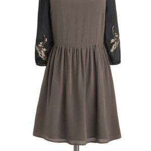 Modcloth "Birds and the Beads Dress" - Silk, XS, Beaded, Sleeves