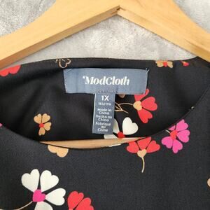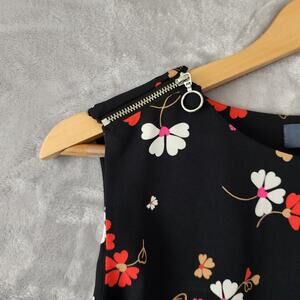 Chic black dress with vibrant floral print. Sleeveless design. Perfect for any occasion.