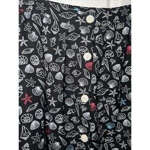 Modcloth Black Seashell Print Linen Blend Button Front Skirt Size 26W Nautical