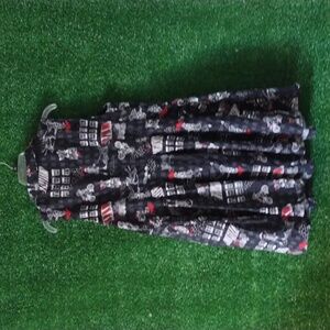 Charming midi dress with a unique graphic pattern. Features a flattering fit and playful design. Ideal for versatile styling.
