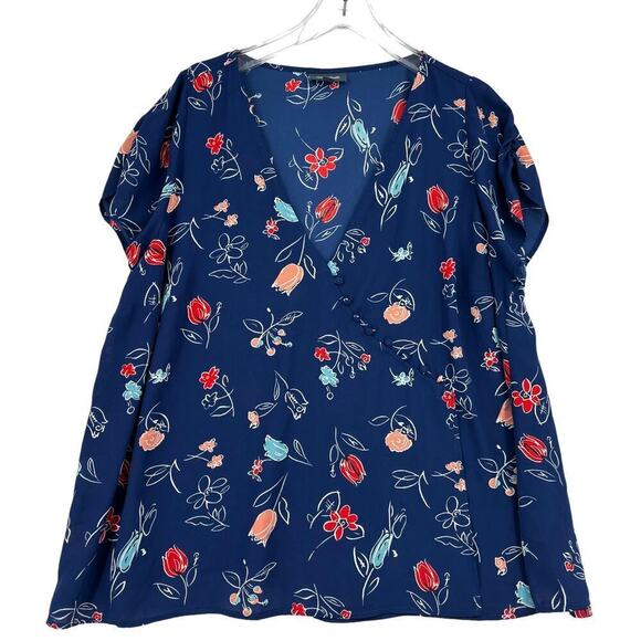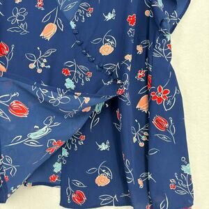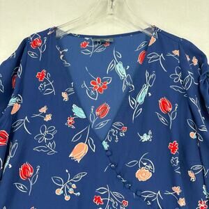 Modcloth Blouse Top Semi Sheer Cap Sleeve Covered Buttons Blue Floral Size 1X