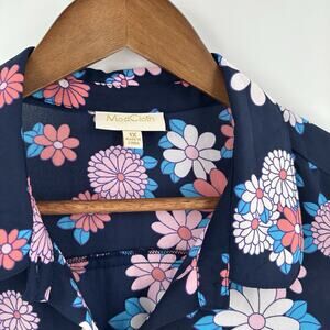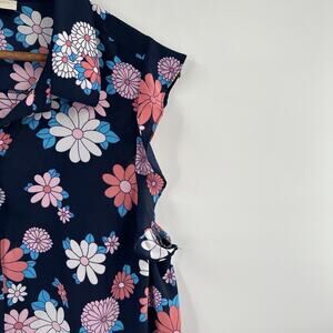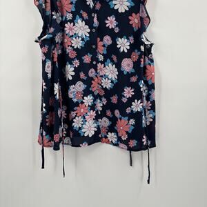 Modcloth Blouse Womens 1X Blue Floral Chiffon Button Sleeveless Tie Detail