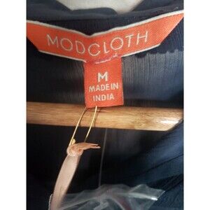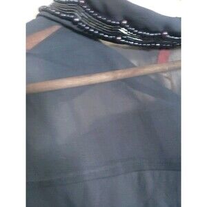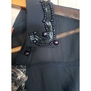 Modcloth Blouse Women's Medium Navy Blue Chiffon Beaded Collar Sheer Top NWT