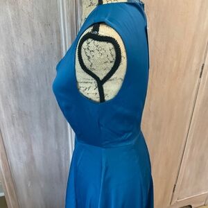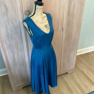 Modcloth Blue Fit Flare Sleeveless Midi Dress wedding party V neck sleeve retro