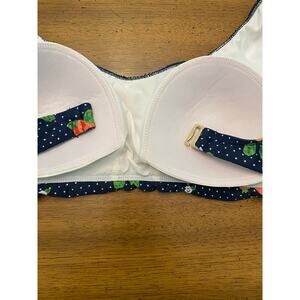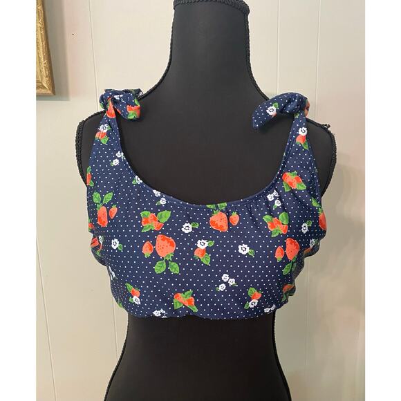 Modcloth Blue Polka Dot Strawberry Tie Strap Metal Back Closure Bikini Top Large