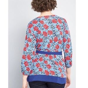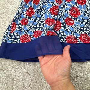 Modcloth Blue Red Floral Roses Surplice Wrap Blouse Top