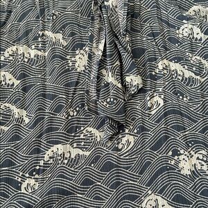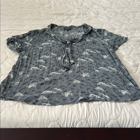 Chic gray blouse with wave pattern. Features a tie-front detail. Ideal for casual wear.
