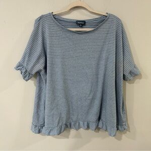 Modcloth Blue White Stripe Flutter Sleeve Crossover T-Shirt Women’s Size 2X