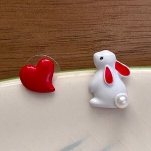 ✨Modcloth Bunny Heart Love Red & White Asymmetric Earrings