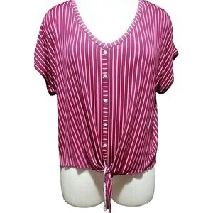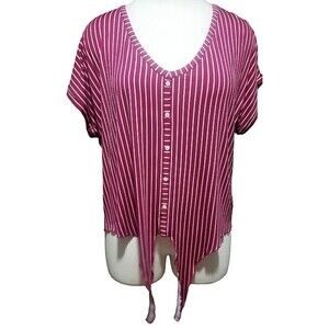 Modcloth Burgundy Top Boxy Tie Front Plus Size 2X Striped Womens Casual Mod NWT . Condition is New with tags.