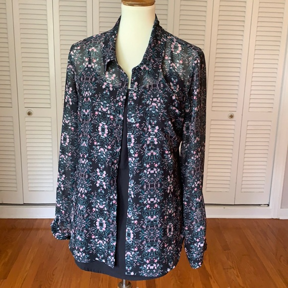 Modcloth size large sheer button up blouse & cami. Two pieces both in excellent condition. Fun floral kaleidoscope pattern.