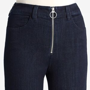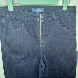 Modcloth By All Means Exposed Zip Skinny Jeans High Waist Dark Blue Indigo Size Medium. Full length. 4 pocket design. Flat front. O-Ring Exposed Zipper. High Waisted. Fabric has stretch. NWT