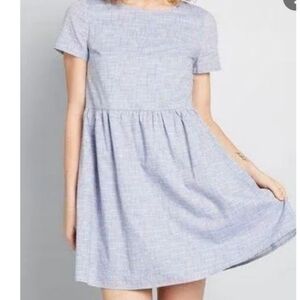 Modcloth Chambray Rainbow Stitched Dress S