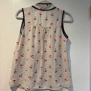 Modcloth Cherries Blouse in size XS. White with black polka dots and all over cherries pattern. Tie neck. Lightweight, perfect for summer.