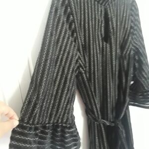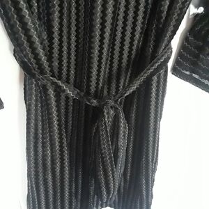 Fully lined. Removable sash. Button closure at neckline.