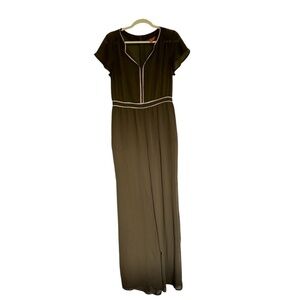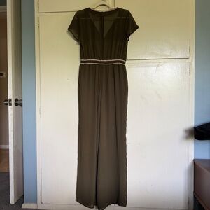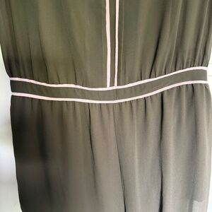 Modcloth Chiffon Olive Green Pink Short Sleeve Jumpsuit Size Medium