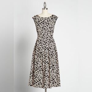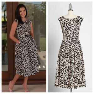 Modcloth Closet London Midi Dress Floral Black Cream US 12