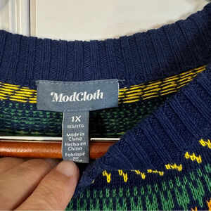 Modcloth Cozy Commitment Pumpkin Sweater Dress in Navy Size 1X Halloween Fall