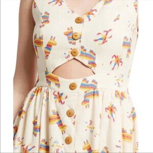 Fit & flare dress with a cute cutout and vibrant piñata print! Only worn once and in flawless condition. The most adorable dress ever! And it's super flattering and comfortable. High quality fabric. Perfect for your summer brunches & BBQs, dates, vacations .... super versatile! Great with flats, wedges, sneakers.