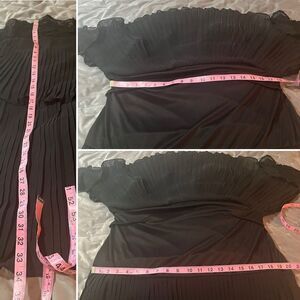 Modcloth by Forever Unique Dauntless Dahlias Tiered Mini Dress Pleated Cocktail Black 8 NWT. Adorned at the yoke and sleeves with a Daisy mesh lace filled with clusters of black floral blooms amidst winding leaty vines, two tiered mini dress, little black dress! Keyhole button closure at back neckline, sheer ¾ flared bell sleeves, tiered silhouette with ruffle edges in solid black chiffon, pleated throughout, one-of-a-kind. Polyester. Hand wash. Fully lined except sheer neckline and sleeves. Button closure at neckline. New with tags.