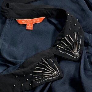 Modcloth Deep Navy Blouse with Beaded Collar Detail
