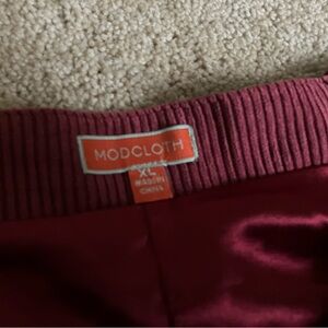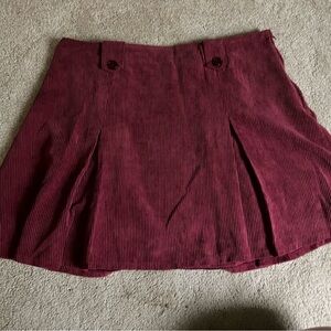 Modcloth Deep Red Corduroy Side Zip Skater Skirt