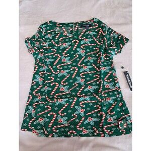 Modcloth Delightful Demeanor Short Sleeve Blouse Candy Cane Holidays Size S NWT