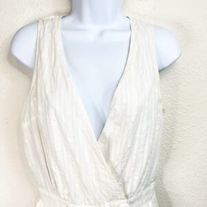 Modcloth Easy Go White Romper Women's Small Sleeveless Cotton Faux Wrap Shorts