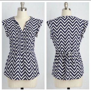 Modcloth Expert in Zeal Blue and White Chevron Striped Button Down Top L