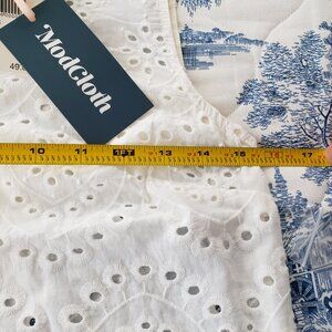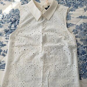 Modcloth Eyelet In The Sun Embroidered Collared White Top Size XS.