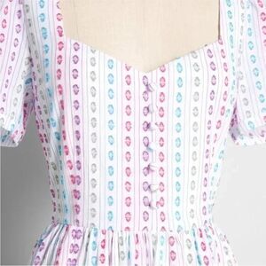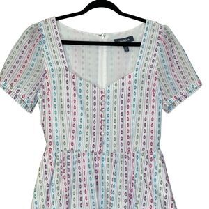 Never worn! White cotton with chenille polka dots. Button front, back zip closure, sweetheart neckline, fully lined.