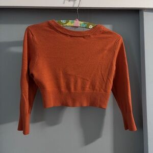 Classic Modcloth Fervour cropped cardigan that goes with dresses just perfectly! A gorgeous pumpkin orange hue that's great for fall. Some piling/wear but still plenty of life left.