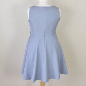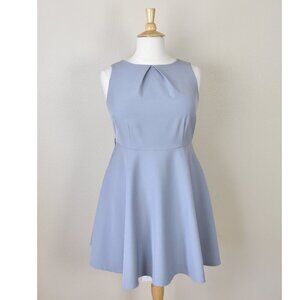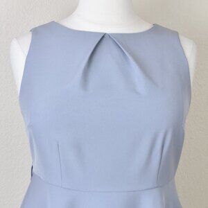 Back zipper. Fitted bodice. Fully lined. Sleeveless. Small belt loops, no belt included. Pleat at neckline. Fit and flare style.