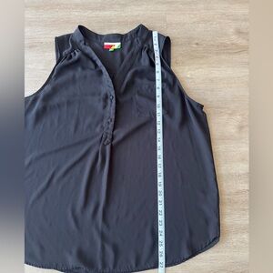 Modcloth Fervour Womens Top Chiffon Black Sleeveless Pocket Shell Button SZ XL