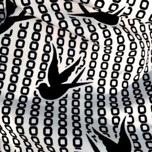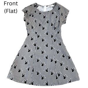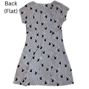 You adore unique looks with classic charm and this dove-printed dress is your latest fashion favorite! Black swallows bring timeless splendor to this white dress, while cap sleeves and vertical stripes patterned with dotted links let this look soar with eye-catching excitement. Fully lined with back zipper closure.