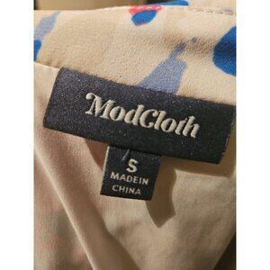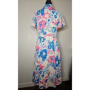 Modcloth Floral Blue Pink Button Down Collared Dress Retro Size Small