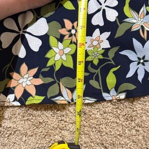Stylish navy dress with vibrant floral pattern. Features a charming tie waist. Ideal for casual outings.