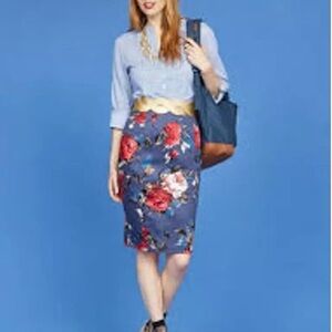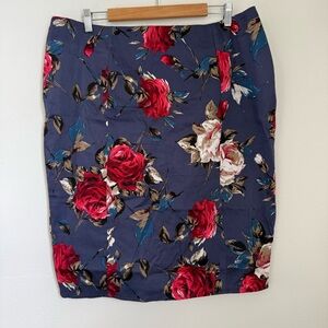 Modcloth Floral Pencil Skirt Blue Red Plus Business Casual Women’s Size 1X