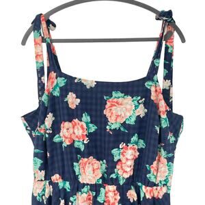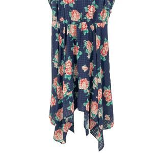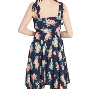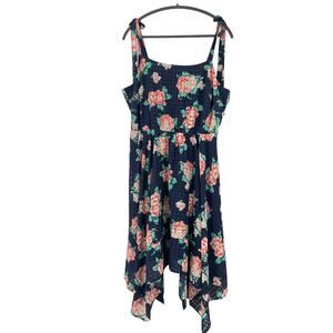 Modcloth Floral Sundress 1X Navy Fit & Flare Retro Party Summer Handkerchief Hem