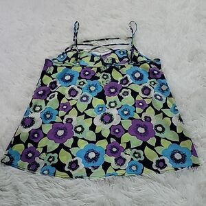 size Medium Modcloth floral tank top blue green purple measured flat pit to pit 18