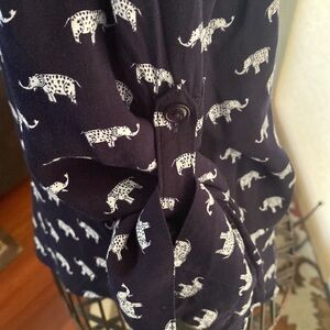 Modcloth Fun 2 Fun Navy blue and White Elephant print button up top