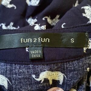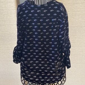 Modcloth Fun 2 Fun Navy blue and White Elephant print button up top. EUC