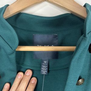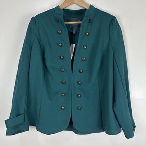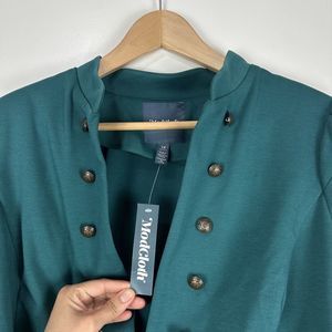 Modcloth Glam Believer Knit Military Button Front Blazer Teal Green Jacket 1X