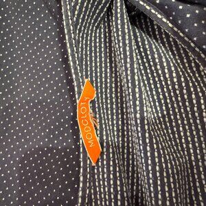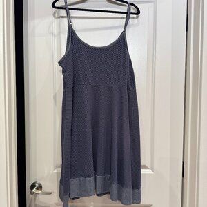 I LOVE the fun contrasting trim on this navy and white sundress! The navy dress has white embroidered(?) thread making the subtle dots (body) and striped (trim) design.