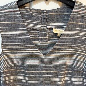 Modcloth Gray Pink Blue Striped Sleeveless Linen blend scalloped hem top