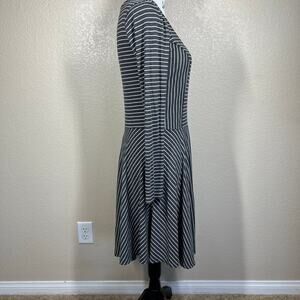 Pre-loved Modcloth Gray White Stripe Weekend Plans Skater Dress Ribbed Stretch Size L