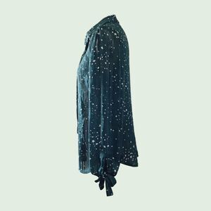 Modcloth Green Striped Star Long Sleeve Whimsigoth Retro Blouse Shirt Top - S