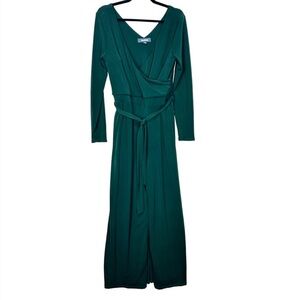 Modcloth Green V-Neck Long Sleeve Jumpsuit F26