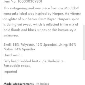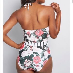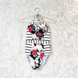 Vintage inspired Harper floral and stripe one piece swimsuit, size small from ModCloth.