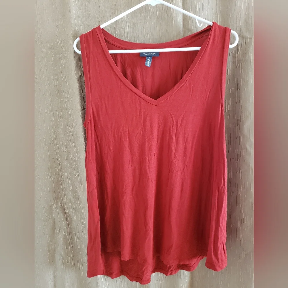 Midcloth brand HiLo tank top in red. Back hangs lower than front for a high-low fit. Size large, very flowy and light. Never worn, no tags.